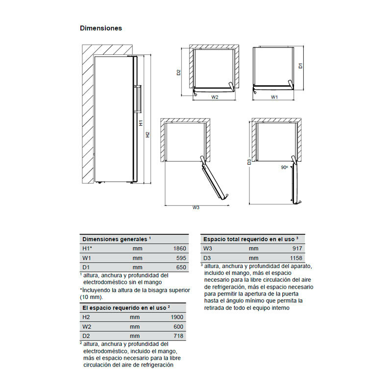- Interior con 5 estantes regulables, 5 balcones en puerta y botellero