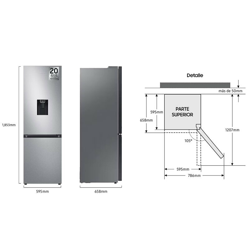 Comparado con otros frigoríficos de la industria, el Samsung RB34C632DSA/EF se destaca por su motor duradero y silencioso que ofrece una operación más eficiente y menos ruidosa. Su capacidad amplia y el dispensador de agua lo posicionan como una opción práctica y versátil frente a modelos anteriores o estándar, brindando mayor comodidad y frescura para el usuario.