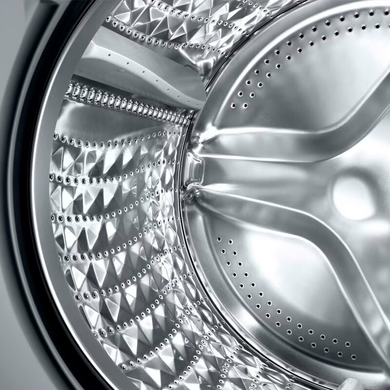 Su tambor Diamante protege las fibras de la ropa, evitando el desgaste prematuro durante el lavado. Incorpora dosificación automática y prelavado con burbujas, que mejoran la eliminación de manchas difíciles sin necesidad de esfuerzo adicional. La función de inicio diferido brinda mayor comodidad para programar los ciclos según tu horario, y el bloqueo infantil garantiza seguridad en el uso diario.