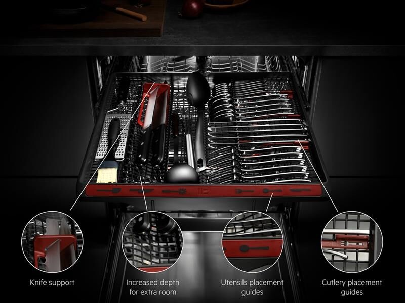 El interior inteligente incluye una tercera bandeja para utensilios pequeños, estantes de taza plegables y un cesto superior regulable en altura, asegurando una organización óptima. Asimismo, el cuidado especial para copas prolonga la vida útil de la cristalería delicada. Todo ello acompaña a un diseño con puerta deslizante y controles mediante botones, que combina funcionalidad con un toque de estilo.
