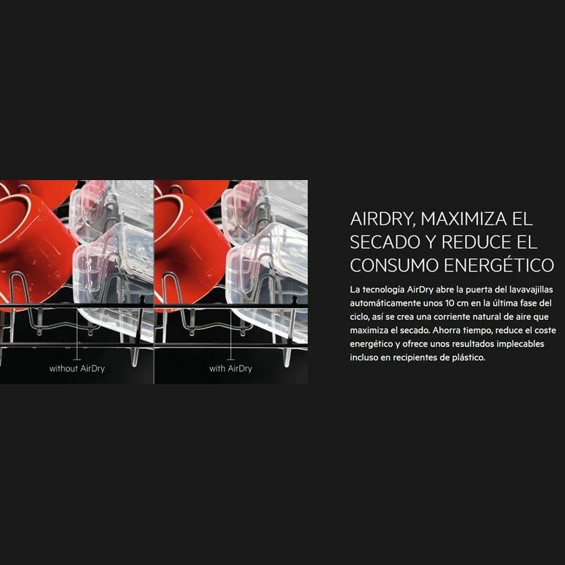 Este lavavajillas está equipado con el Aqua-Sensor, que detecta el nivel de suciedad para ajustar automáticamente el consumo de agua, maximizando el ahorro y eficacia. La función de inicio diferido hasta 24 horas permite adaptar el ciclo de lavado a tu rutina diaria. Junto con su sistema termo eficiente, este modelo garantiza un lavado profundo y cuidadoso, proporcionando una solución completa para el lavado de vajilla en el hogar moderno.
