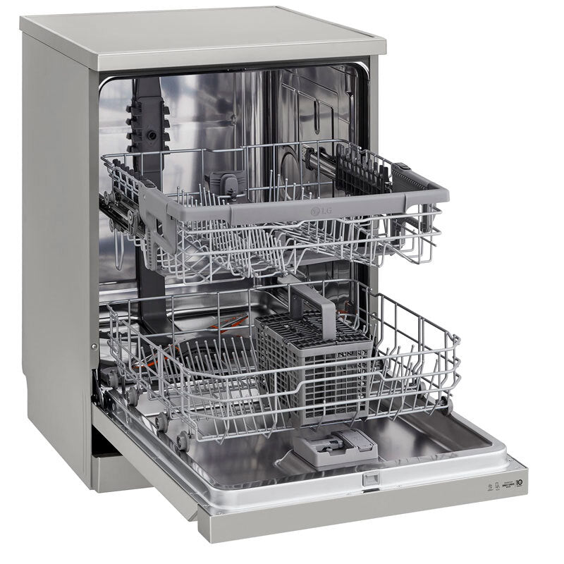La avanzada ingeniería del motor Inverter garantiza un funcionamiento suave y duradero, respaldado por una garantía de diez años. El sistema Quad Wash utiliza brazos multi-movimiento para cubrir cada rincón de la vajilla con chorros de alta presión, mientras que el bajo nivel de ruido de solo 46 decibelios convierte este lavavajillas en una opción ideal para quienes valoran un ambiente tranquilo en el hogar. Con un consumo energético competitivo y programas adaptables, el Lavavajillas LG DF242FP 60 cm es una solución eficiente y moderna para el lavado diario.