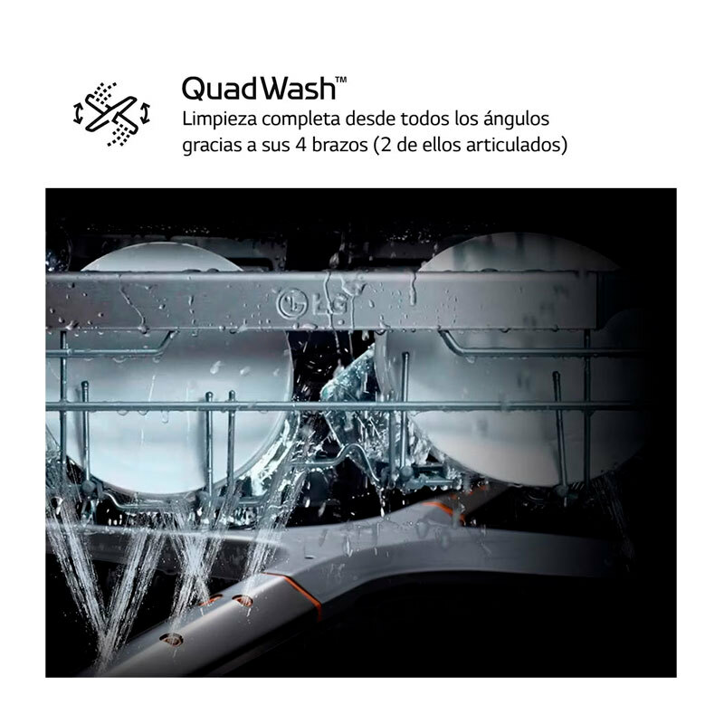 - Sistema de lavado Quad Wash con brazos de alta presión que garantizan una limpieza profunda y uniforme.