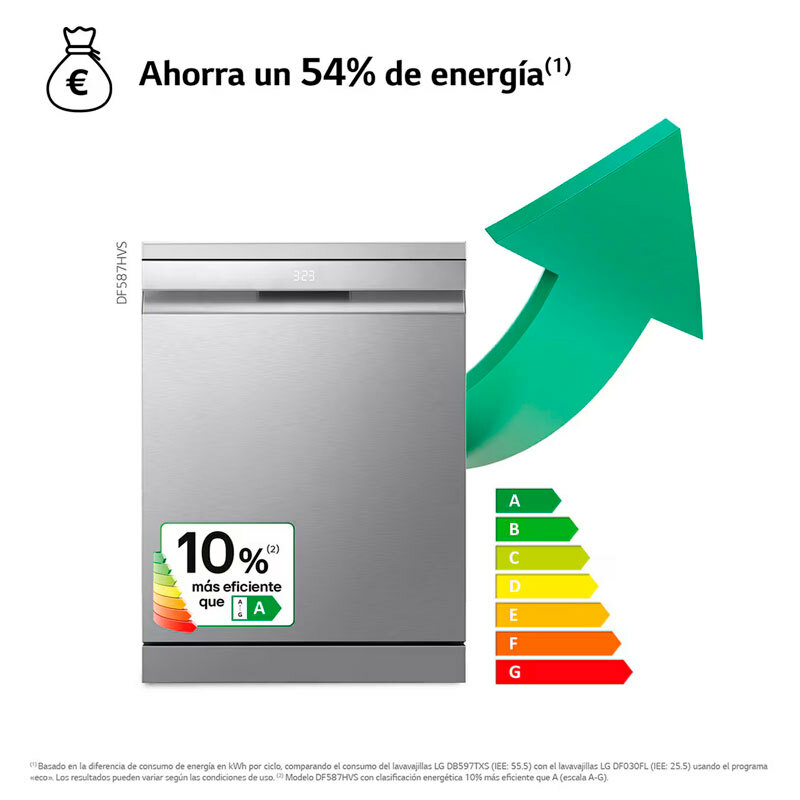En comparación con otros modelos del mercado, este lavavajillas LG destaca por su combinación de tecnología avanzada y bajo consumo, superando los estándares habituales de eficiencia y cuidado. A diferencia de modelos anteriores, incorpora el sistema QuadWash y TrueSteam, garantizando una limpieza profunda incluso en la vajilla más delicada, además de un acabado libre de manchas.
