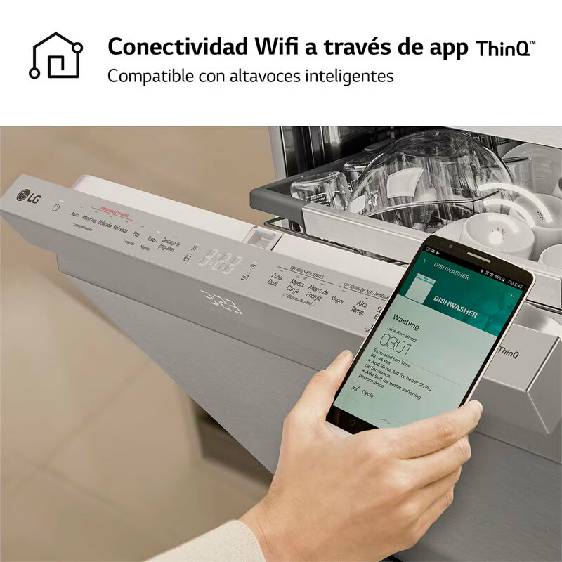El lavavajillas LG DF587HVS integra tecnología de punta como el sistema QuadWash, que utiliza chorros de agua multidireccionales para eliminar la suciedad en cada rincón. La función TrueSteam añade vapor para desinfectar y eliminar las manchas difíciles sin dañar las piezas más delicadas. Su operación ultrasilenciosa y la gestión remota por WiFi convierten esta máquina en una solución práctica, eficiente y silenciosa para la vida moderna. Con su diseño elegante y prestaciones superiores, es una inversión que mejora tu día a día mientras cuida el medio ambiente.