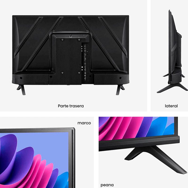 - Pantalla de 40’’ (100 cm) con resolución Full HD 1080p y tecnología DLED, que garantiza imágenes nítidas, colores vibrantes gracias a Natural Color Enhancer y alto contraste para una experiencia visual más realista.